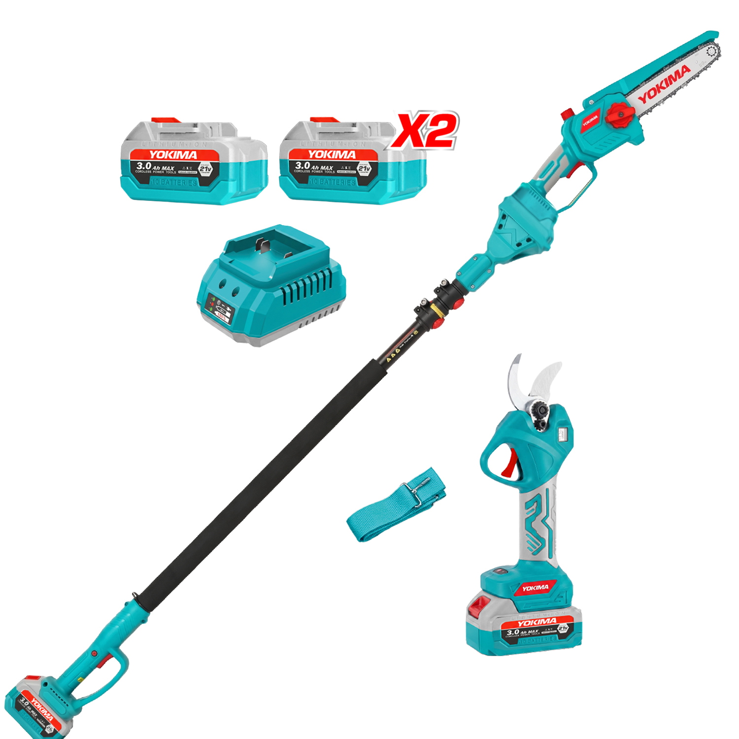 Sega da potatura telescopica a batteria 21V con motore brushless + Troncarami 21V motore brushless+ Asta estensibile fino a 250 cm per raggiungere facilmente rami alti.