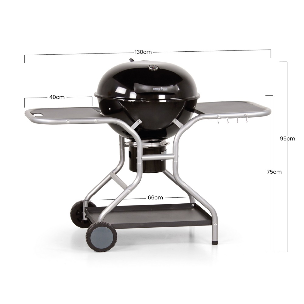 Barbecue a carbonella Sally - Dimensioni: 130x66x101 cm griglia: diam 54 cm x 4 mm corpo principale bbq diam 56,3cm*26cm, spessore 0,8 mm coperchio diam 57*18 cm - Sistema raccogli cenere sottostante