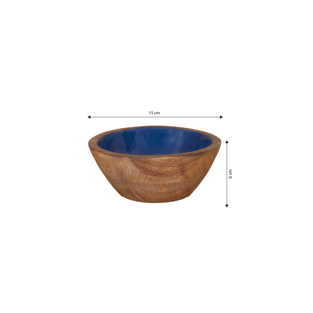 Ciotola in mango con esterno color legno naturale e interno laccato lucido color blu con diametro 15cm
