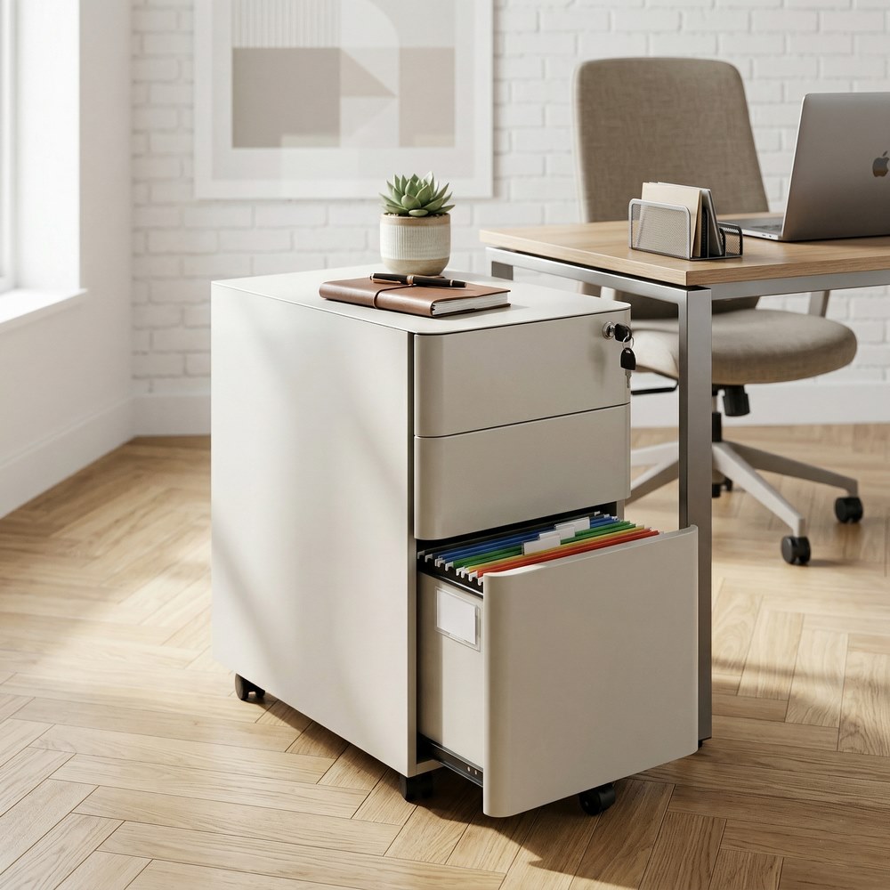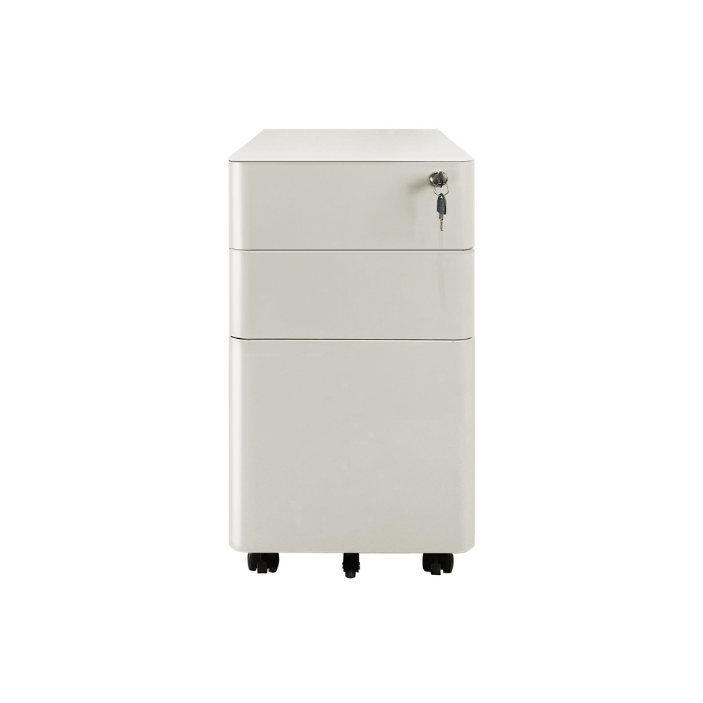 Cassettiera mobile in acciaio laminato a freddo di alta qualit. Dimensioni (LxPxA): 30x50x59.5 cm, spessore 0,6 mm. Colore bianco, verniciatura a polvere epossidica. Bordi curvi.
