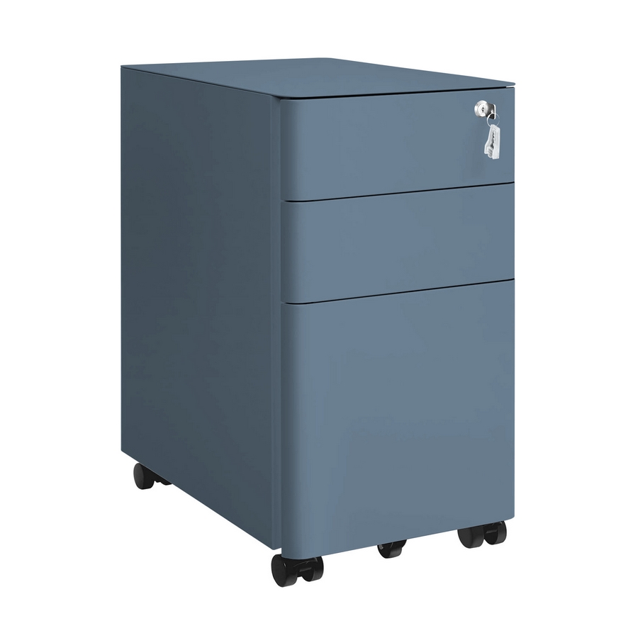 Cassettiera mobile in acciaio laminato a freddo di alta qualit. Dimensioni (LxPxA): 30x50x59.5 cm, spessore 0,6 mm. Colore ceruleo, verniciatura a polvere epossidica. Bordi curvi.