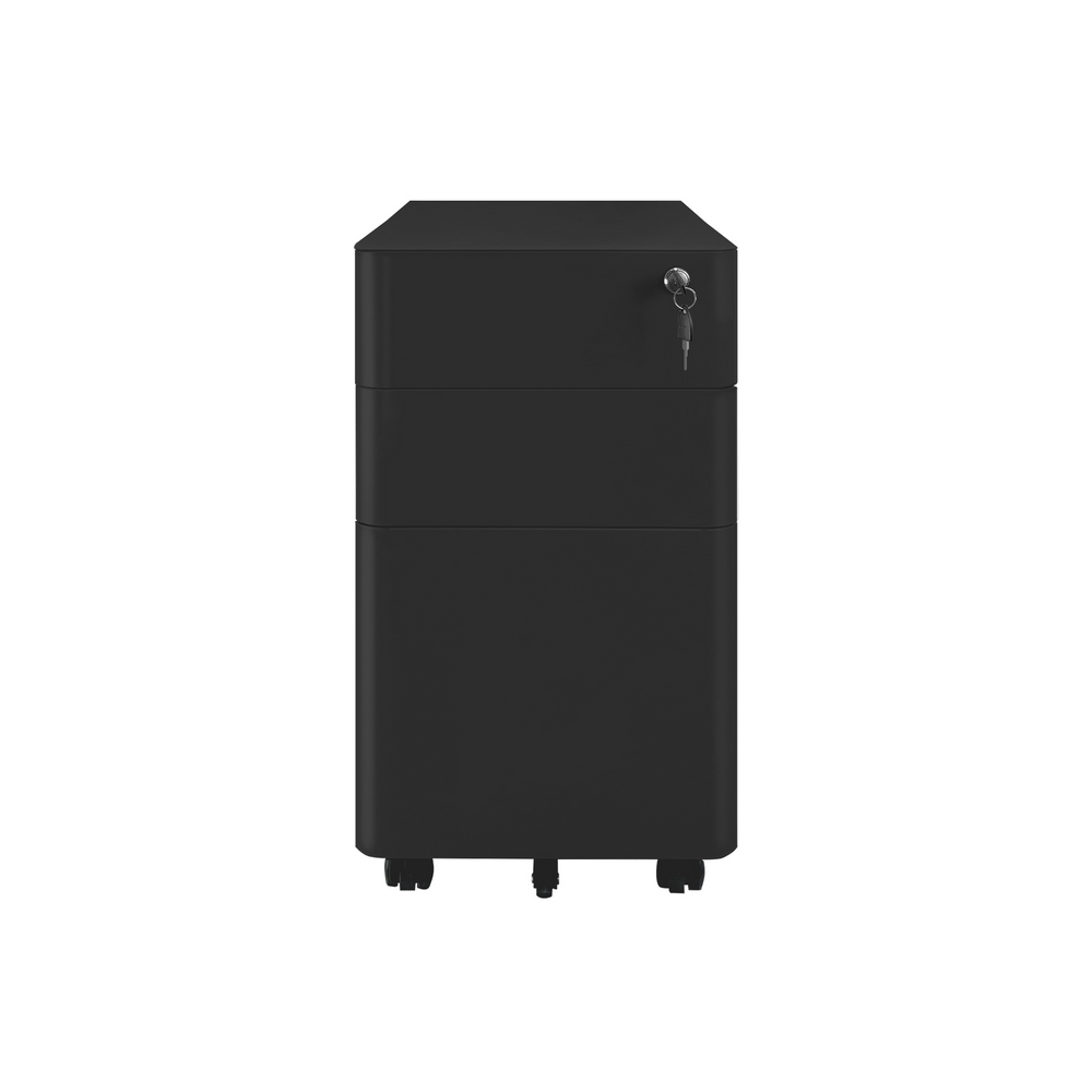 Cassettiera mobile in acciaio laminato a freddo di alta qualit. Dimensioni (LxPxA): 30x50x59.5 cm, spessore 0,6 mm. Colore nero, verniciatura a polvere epossidica. Bordi curvi.