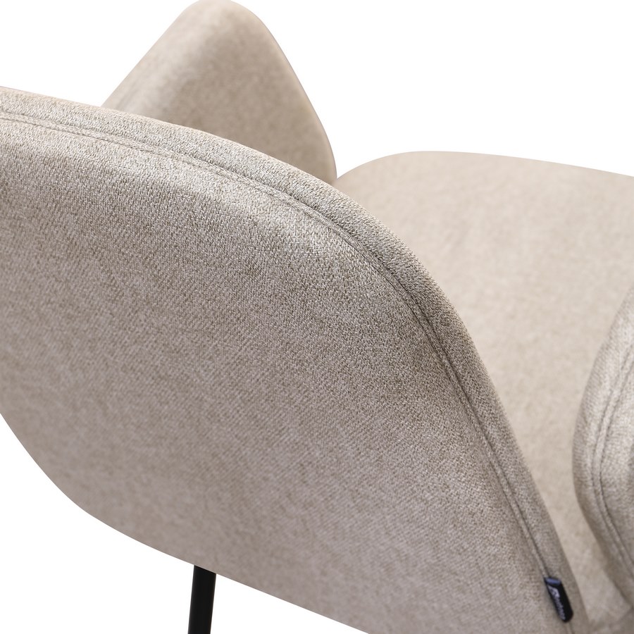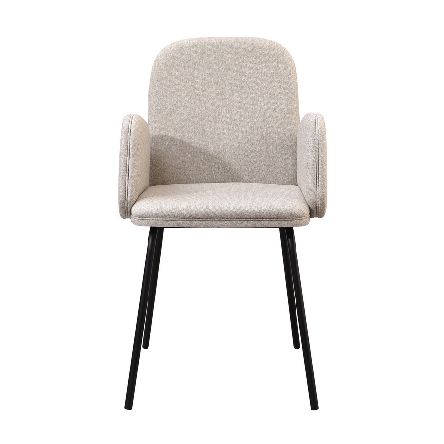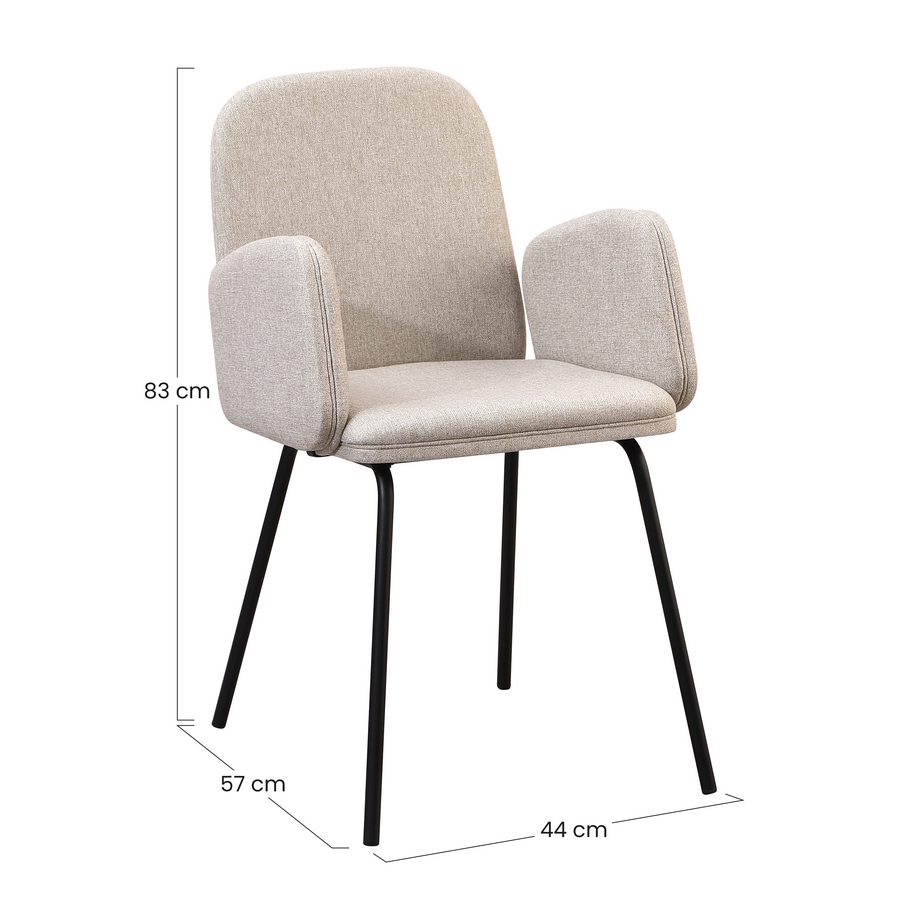 Set 2 sedie con braccioli in tessuto beige. Dimensioni (LxPxA): 44x57x83 cm. Gambe metalliche nere 16x1,2 mm.