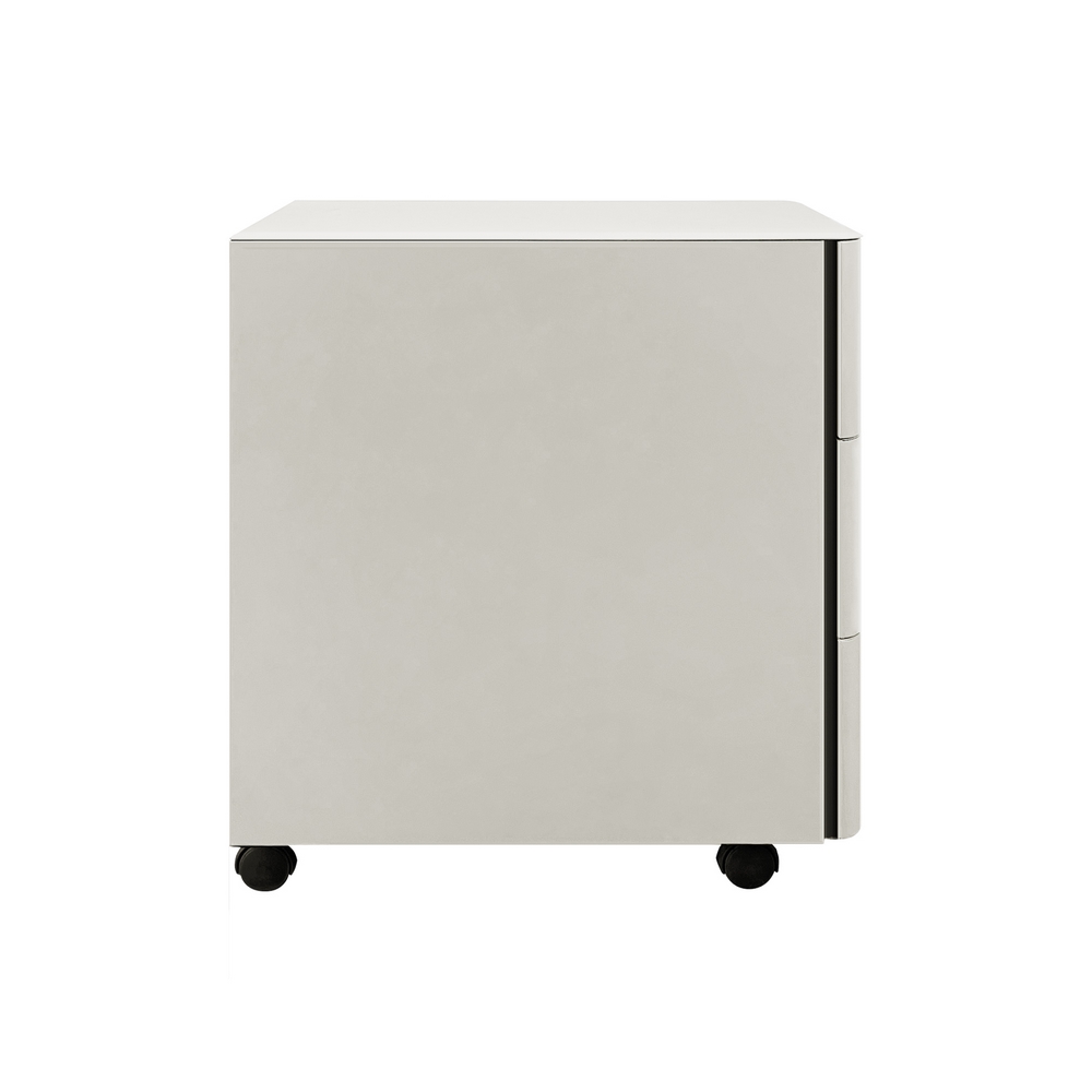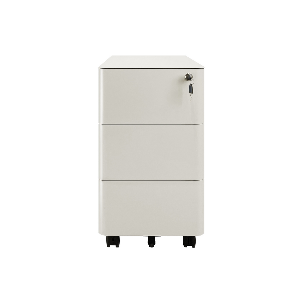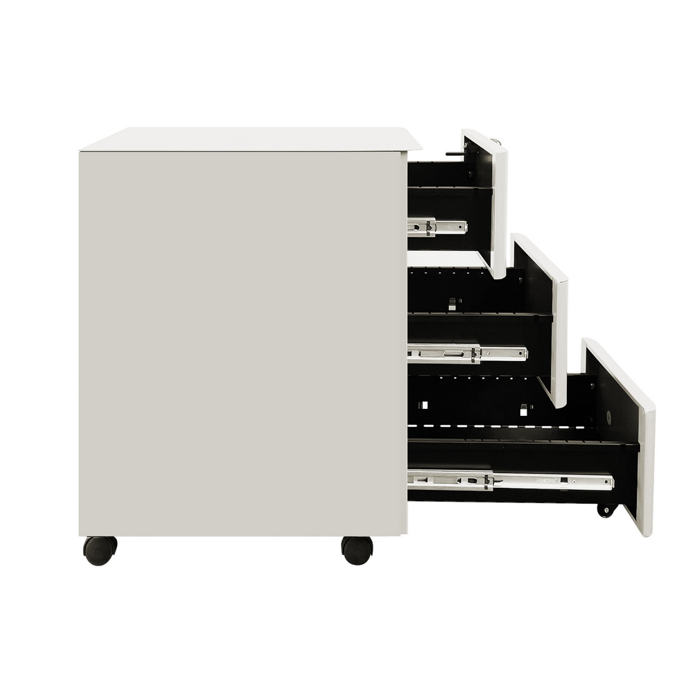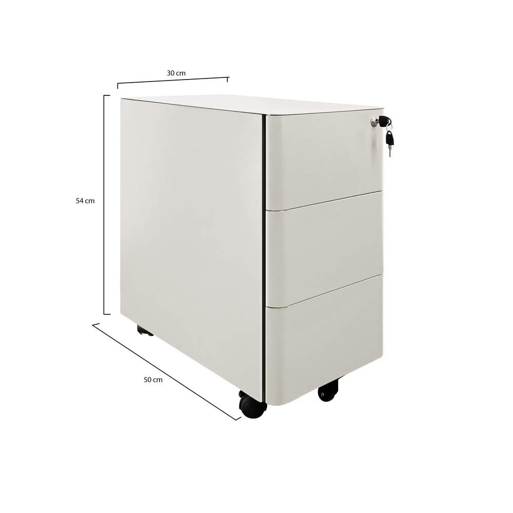 Cassettiera mobile in acciaio laminato a freddo di alta qualit. Dimensioni (LxPxA): 30x50x54 cm, spessore 0,6 mm. Colore bianco, verniciatura a polvere epossidica. Bordi curvi.