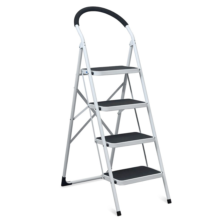 Scaletta pieghevole in metallo a 4 Gradini con piedini antiscivolo, misura sgabello, gradini con pianta larga antiscivolo - Multiuso