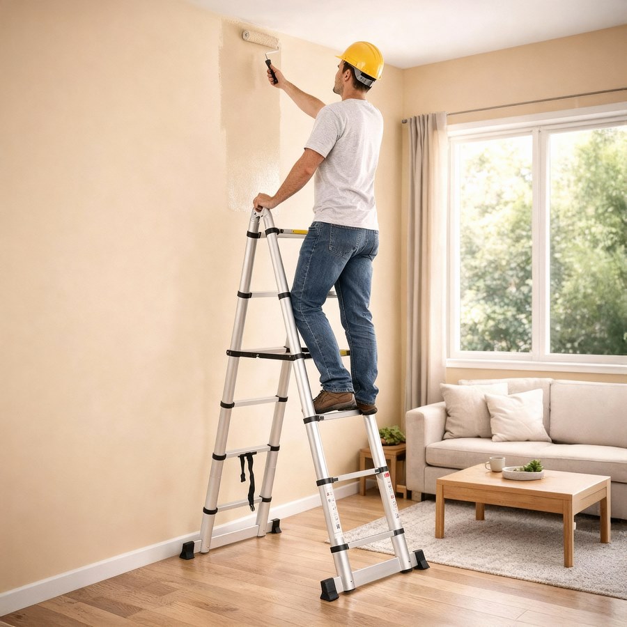 Scala telescopica in alluminio di 3,8m (1,9+1,9M). Spessore di 1,3-1,5 mm e carico massimo di 150 kg. Altezza gradini: 30 cm.