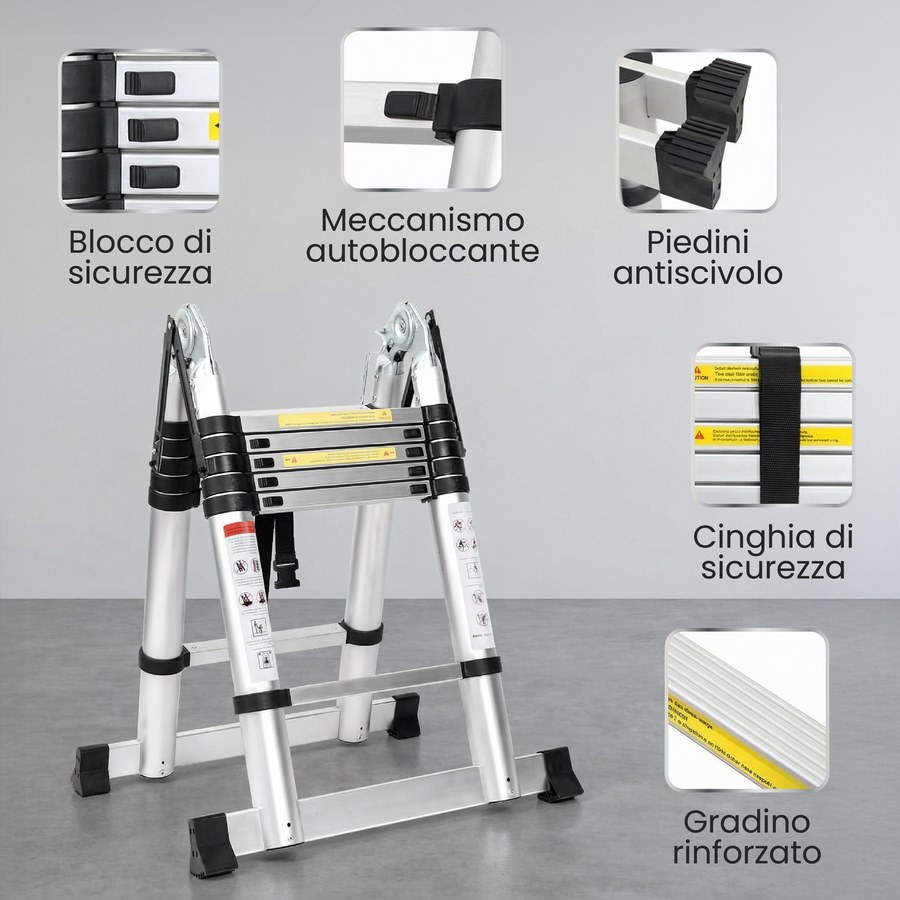 SCALA TELESCOPICA PIEGHEVOLE ALLUMINIO 3.8M