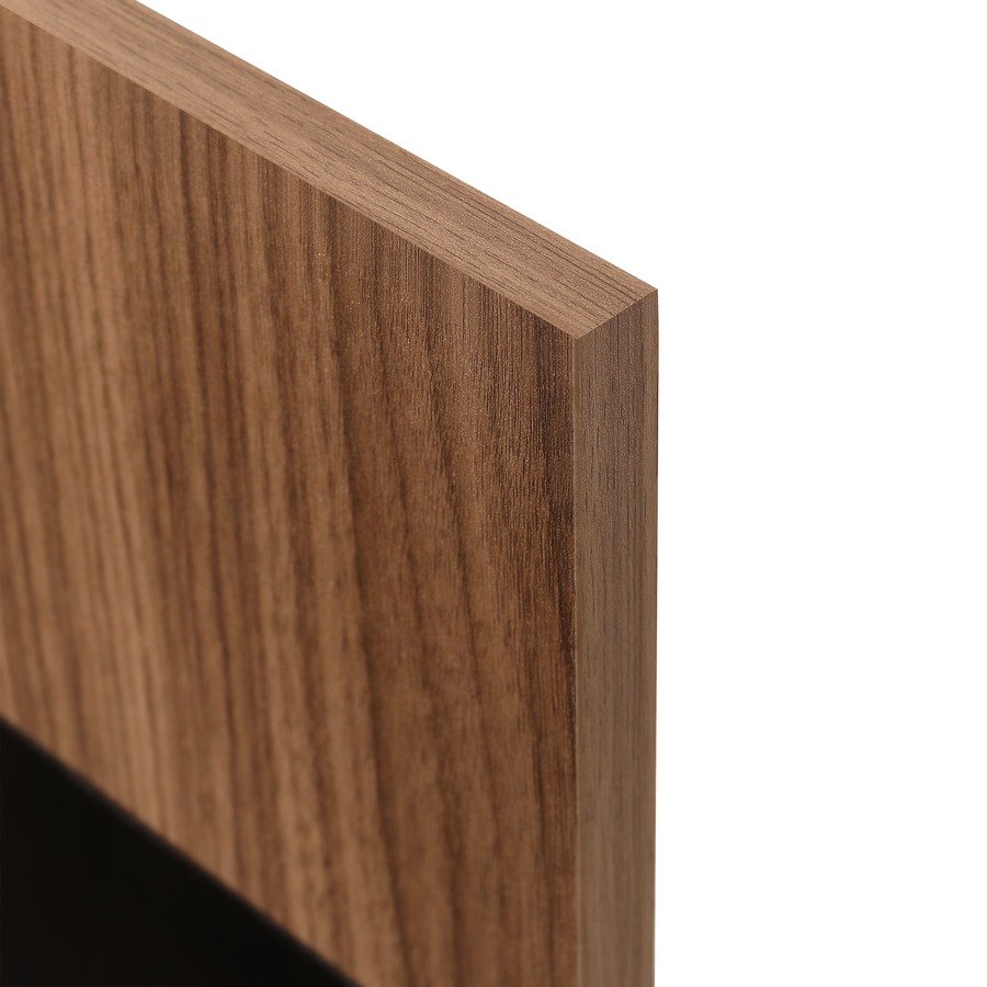 Mensola da parete, colore noce e nero con lavorazione blister cannettata. Dimensioni (LxPxA): 110x20x25 cm. Materiale legno melaminico Sp.18 mm.