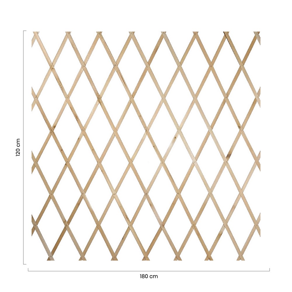 Traliccio in legno dimensione 180x120cm. Dimensione stecca: L18x5P mm. Color legno. Materiale abete.