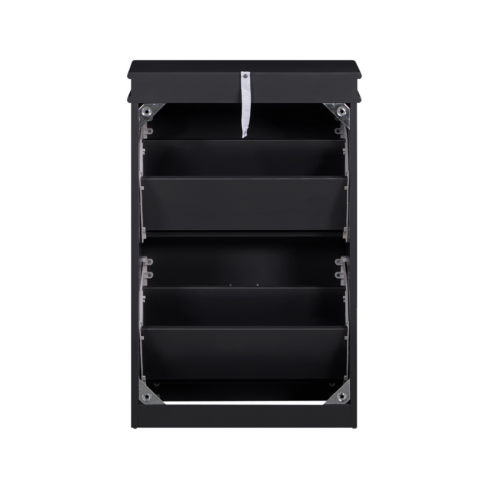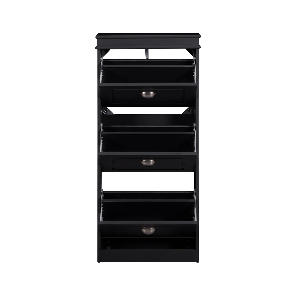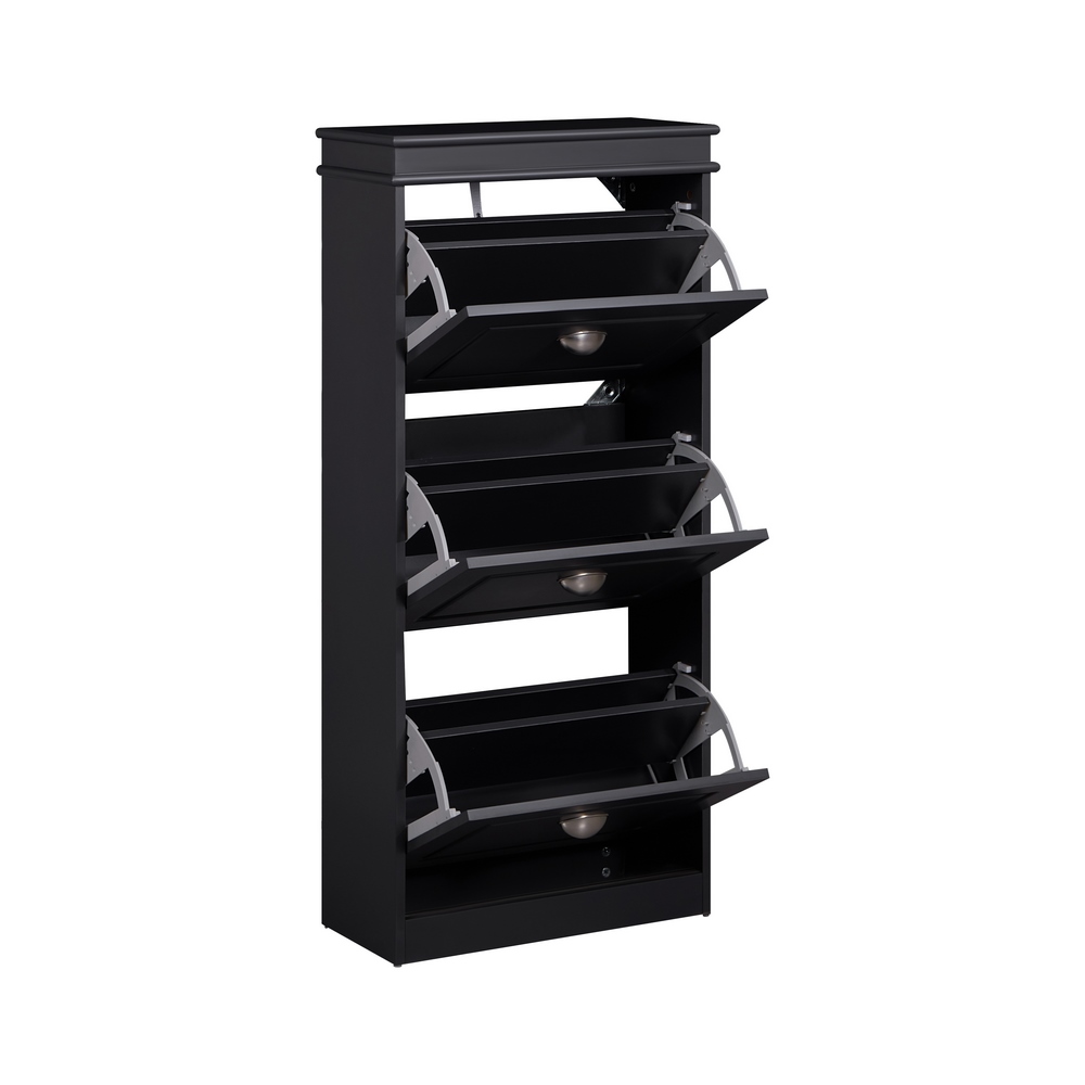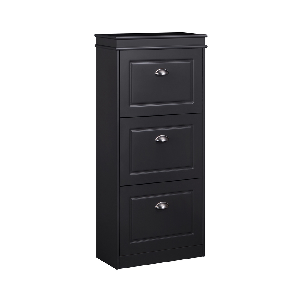 Scarpiera grigia bugnata con 3 ribalte disposte verticalmente. Dimensioni (LxPxA): 53x24x117 cm. Materiale legno MDF lavorazione blister PVC. Maniglie in alluminio.