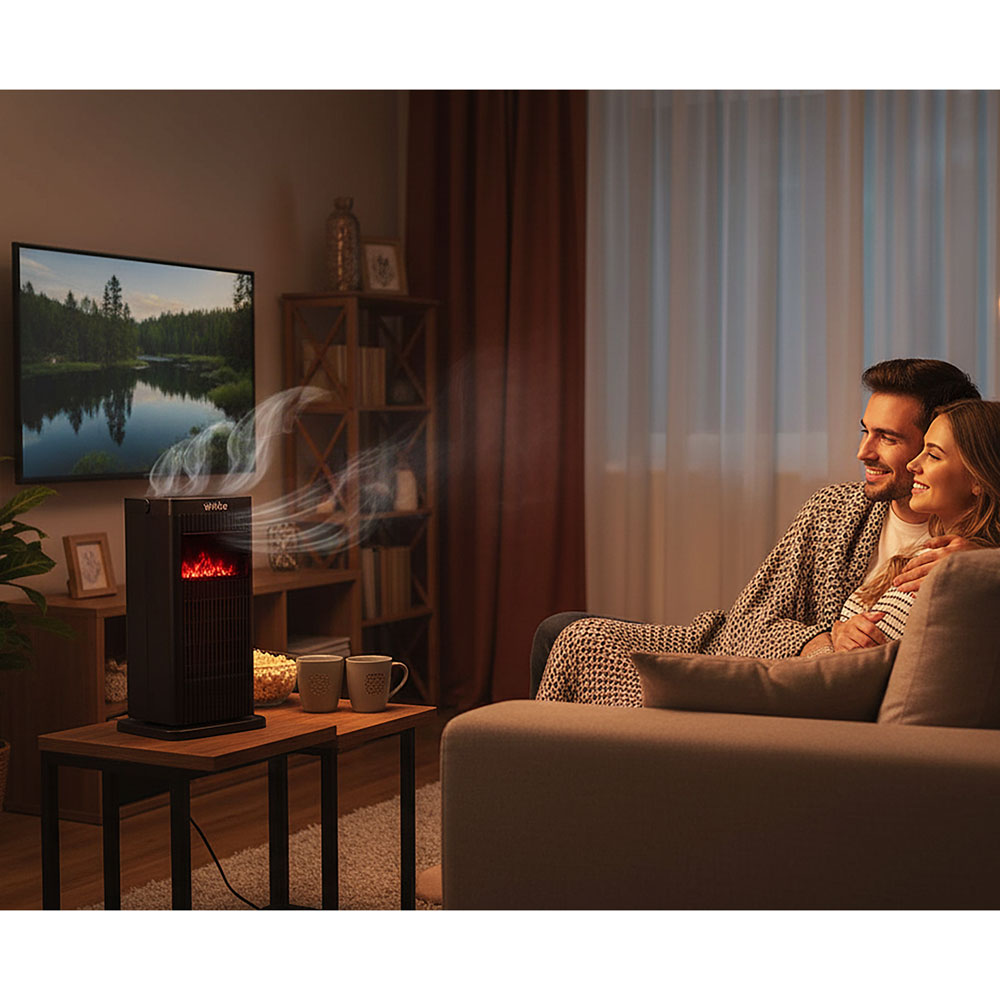 Stufa elettrica con led effetto camino 230V. Potenza regolabile 900-1500W. Con funzione oscillante. Con protezione da surriscaldamento. Fiamma 3D