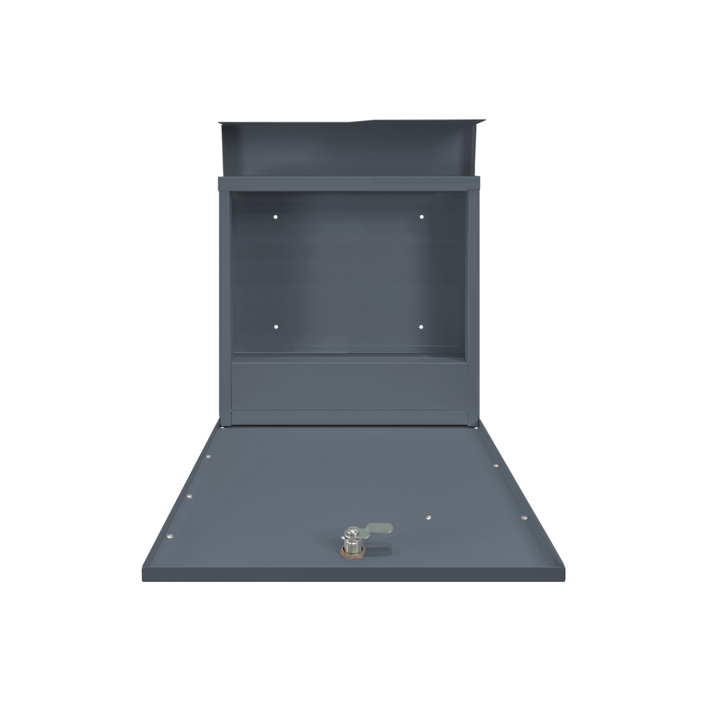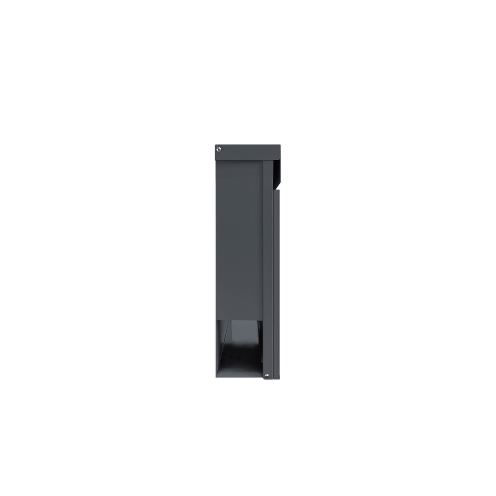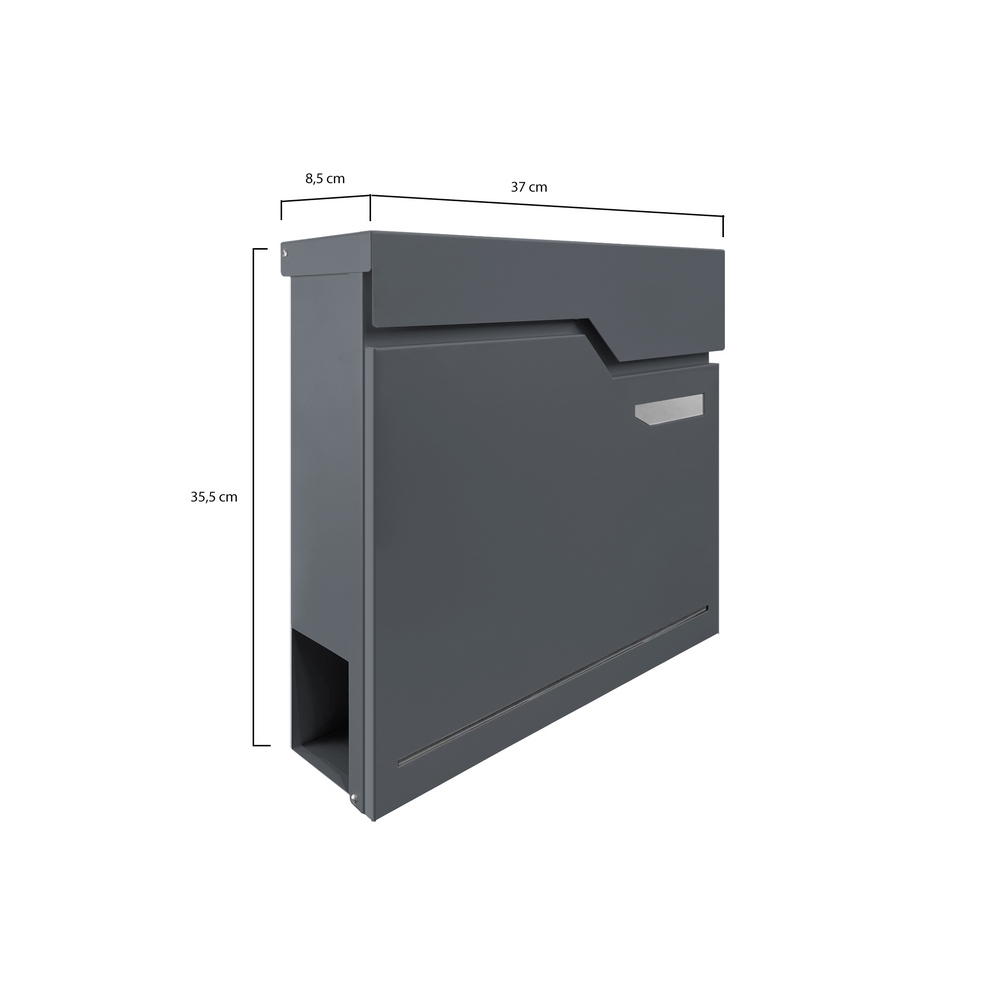 Cassetta postale in acciaio zincato, dimensioni (LxPxA): 37x8,5x35,5 cm. Colore antracite. Spessore 0,6 mm, verniciatura a polvere per esterno, fissaggio a parete, serratura con chiave. Prodotto preassemblato.